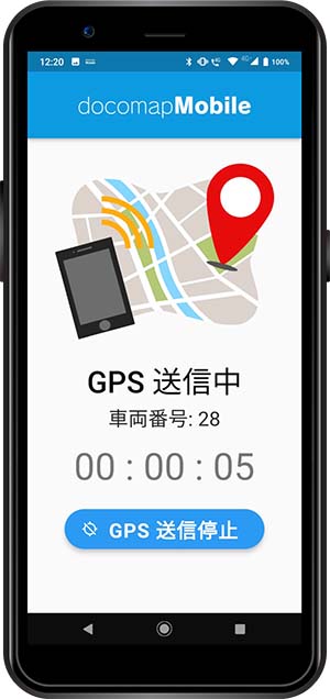 DoCoMAP専用の無料アプリケーションで、DoCoMAPの位置情報と連動した運行状況をクラウドで管理することで、運行日報作成や労務管理が可能です。